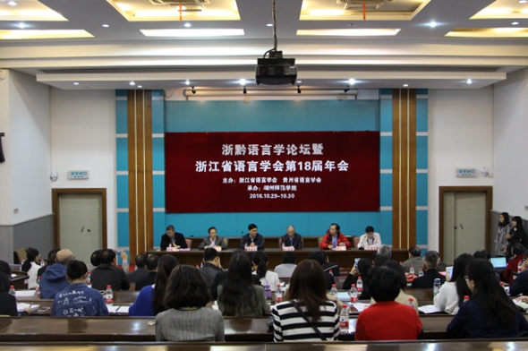 10月28日至30日,以“融合、创新”为主题的浙黔语言学会论坛暨浙江省语言学会第18届年会在我校召开。本次会议是浙江省社会科学界第三届学术年会分论坛之一。本次论坛由浙江省语言学会、贵州省语言学会联合主办,我校文学院承办。开幕式由浙江省语言学会会长张涌泉主持。