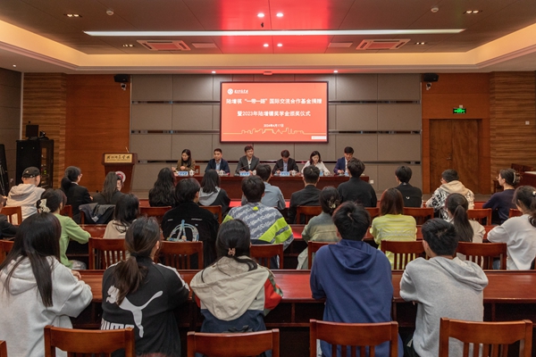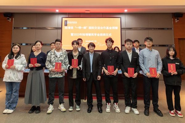 4月17日下午,陆增祺“一带一路”国际交流合作基金捐赠暨2023年陆增镛奖学金颁奖仪式在我校举行。香港亚非集团区域董事、陆增镛教育基金会理事长尹湘华,副校长李庆峰出席,学校学生处、社会合作处、港澳台办公室相关负责人,学校教育发展基金会老师及45名获奖学生代表参加了仪式。