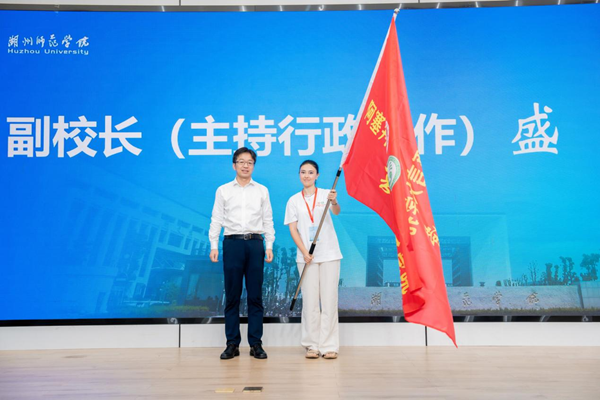 授旗仪式上,盛况向营员代表授营旗、宣布开营,并祝愿同学们在久久精品一区二区的文化交流活动中学习顺利,生活愉快。