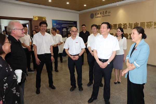 陈浩首先来到我校理学院教学楼,参观强耦合物理国际研究实验室,与一线教师、外籍专家以及正在做实验的学生深入交流,详细了解实验室建设发展情况以及日常教学、科研攻关、学生实习就业等情况,勉励学校师生开拓创新、锐意进取,勇攀科研高峰,为推动产学研融合发展贡献力量。陈浩说,党的二十届三中全会指出,教育、科技、人才是中国式现代化的基础性、战略性支撑,并就深化教育综合改革作出系统部署。全市各级各类学校和广大教师要深入学习贯彻党的二十届三中全会精神和省、市委全会部署要求,坚守立德树人初心,着力引导广大青少年弘扬社会主义核心价值观,锻造过硬本领、锤炼高尚品格,扣好人生的“第一粒扣子”,让每个学生都能成长为有用之才、栋梁之才;要走好改革创新之路,统筹推进育人方式、办学模式、管理体制、保障机制改革,加快建设高质量教育体系;要打响“学在湖州”品牌,坚持把群众满意作为教育发展的评判准则,千方百计促进教育公平,多措并举提升教学质量,奋力推动全市教育事业再上新台阶;要浓厚尊师重教氛围,使教师成为最受尊重的职业之一,努力为大家教书育人提供良好的条件和环境。