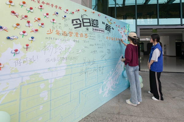 图书馆特别设计了带有浓浓青春气息的留言墙、留影框和正能量满满的手举牌,让新生在这里感受到图书馆的热情与关怀,为他们即将到来的大学生涯开启美好新篇章。